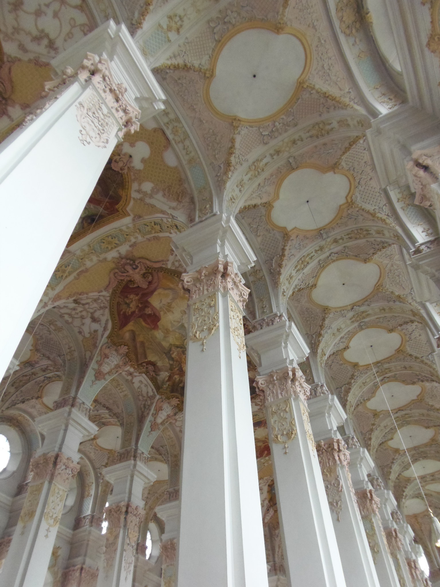 la Heiliggestkirche est toute en suavité avec ses reliefs sur lesquels se répondent des tons délicats de rose, jaune, blanc,