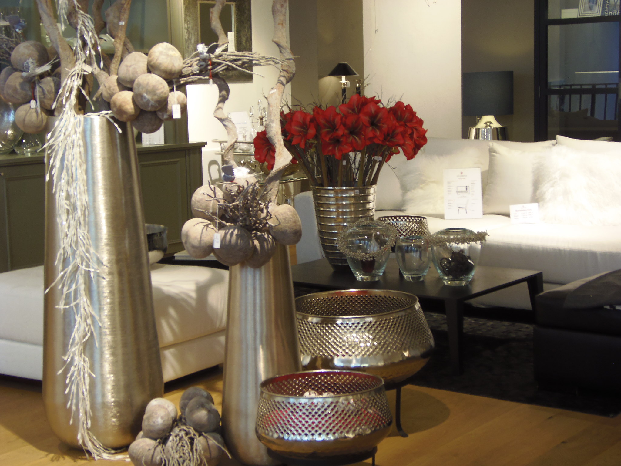 Décoration contemporaine chez Lambert. Les vases et coupes grand format en métal sont particulièrement intéressantes. Le travail du métal varie : perforé, martelé, poinçonné, brossé ou à cannelures.