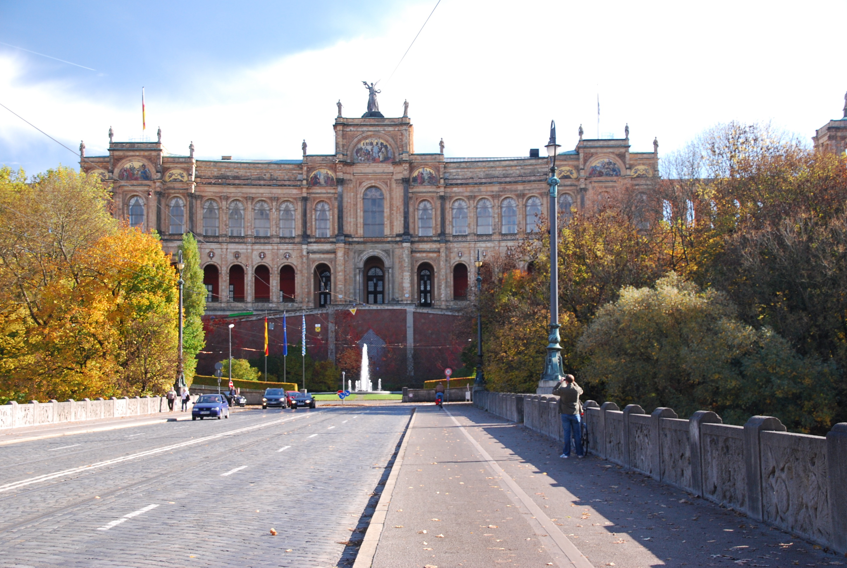 A l’extrémité de la Maximilianstrasse, de l’autre côté du pont qui enjambe l’Isar, se dresse sur un promontoire le Maximilianeum, construit sous Maximilien II de Bavière, il sert désormais de siège au Land de Bavière. Quand on fait le tour du bâtiment, on peut se rendre compte, qu’il a en fait été doublé derrière par des constructions moderne pour pouvoir accueillir tous les services.