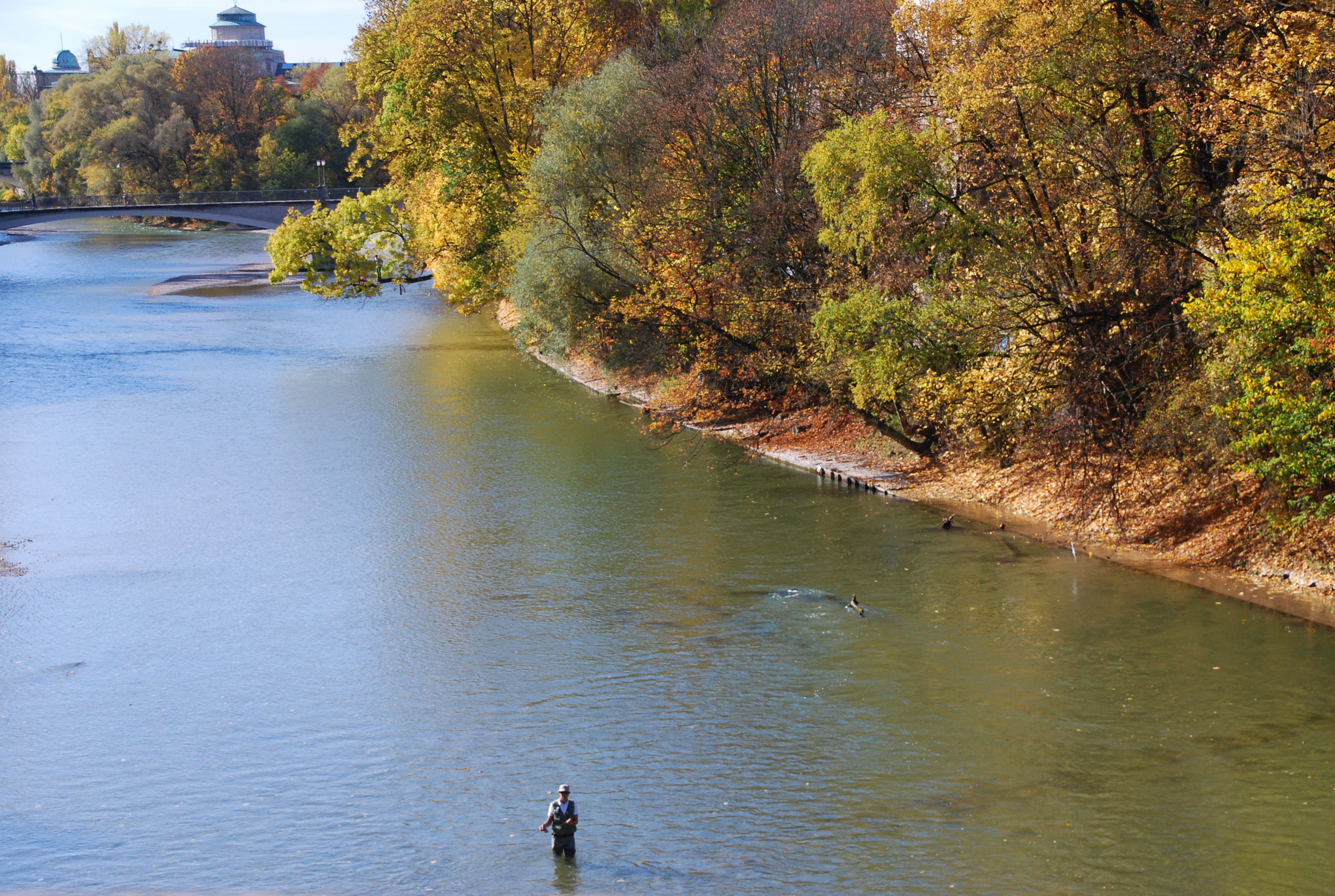 Paradoxe propre à Munich, entre la Maximilianstrasse, avenue qui fait la part belle à la mode et au monde des apparences et le Maximilianeum, symbole du pouvoir, coule l’Isar, où l’on peut voir un pêcheur tout à son passe-temps, loin de l’agitation. Dans la verdure un peu sauvage des berges de l’Isar, promeneurs et cyclistes se livrent au plaisir du sport dans un environnement naturel, loin de la fureur et du bruit, au cœur même de la ville. Des mondes parallèles, éloignés les uns des autres, dont la co-habitation laisse rêveur.