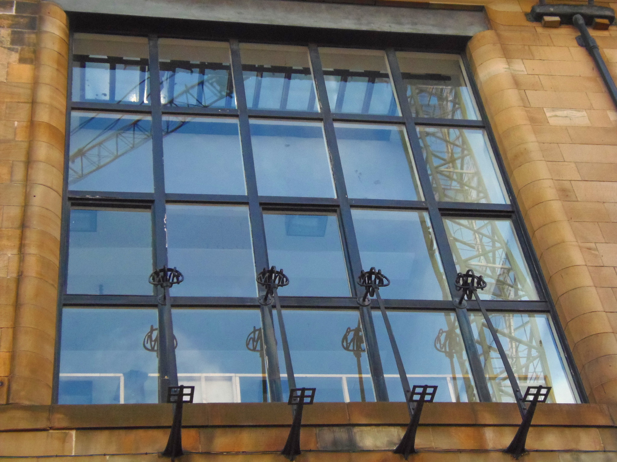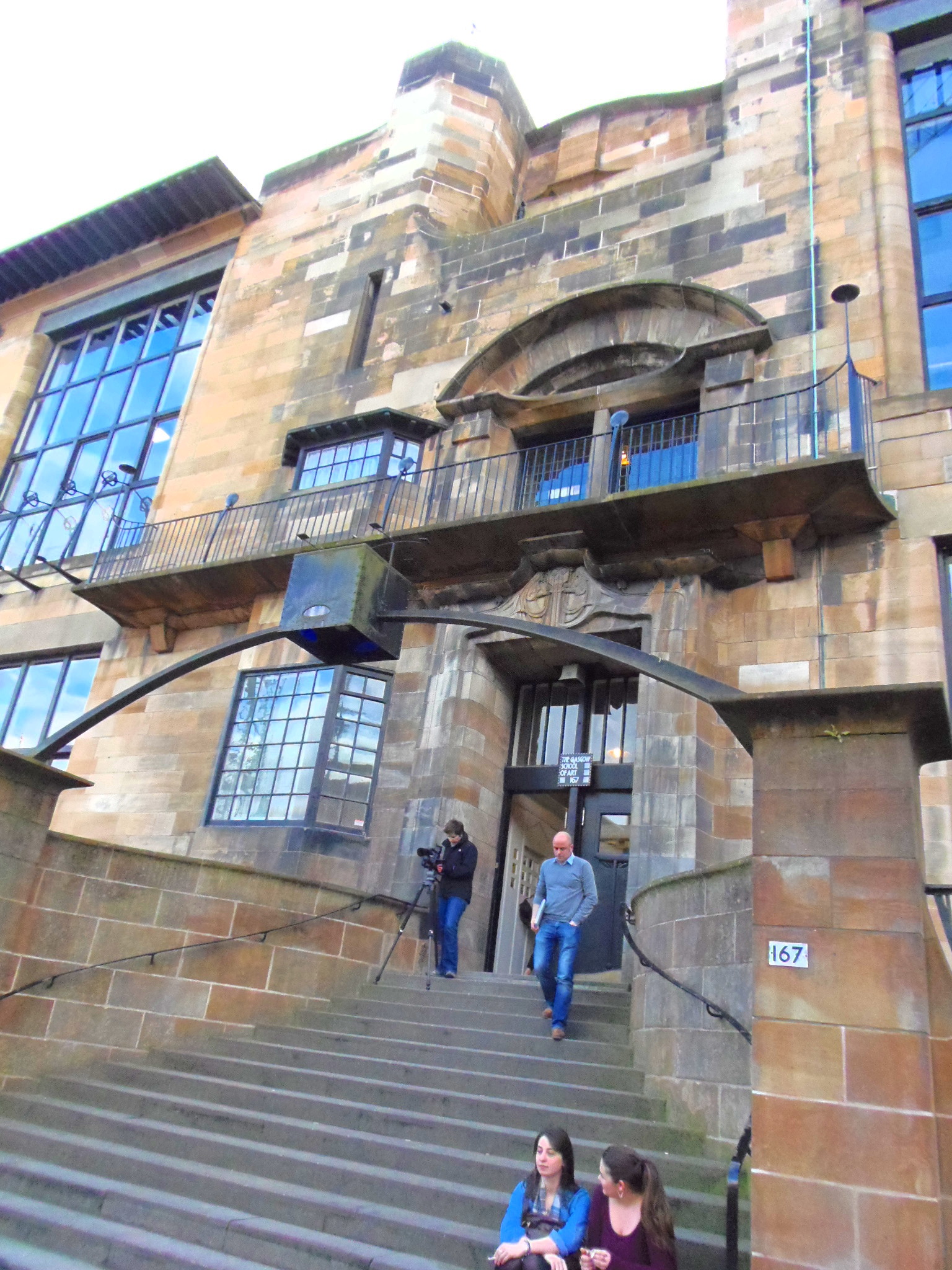 Lorsque nous avons fait un voyage à Edimbourg, en Ecosse, j’avais mis comme condition que nous passerions une journée à Glasgow sur les traces de Charles Rennie Mackintosh (1868-1928). C’est ce que nous avons fait. C’est d’autant plus facile que les deux villes très proches sont reliées par de nombreux trains. Ce qui prouve bien qu’il faut profiter des occasions lorsqu’on voyage pour visiter des lieux ou des bâtiments qui nous font rêver car tout peut arriver. Qui aurait pu imaginer que cet immeuble emblématique de la Glasgow School of Art serait la proie d’un incendie quelques années après notre passage ?