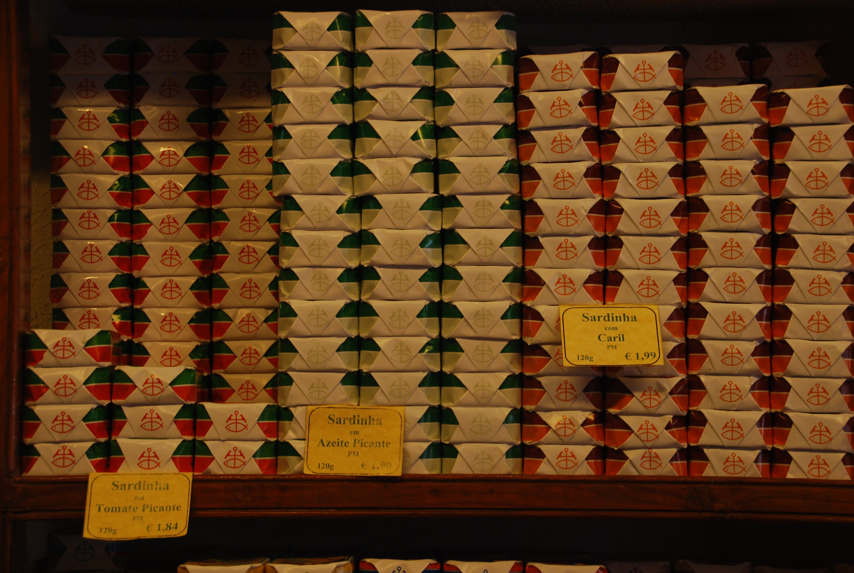 Le Portugal est un pays tourné vers la mer. Pas étonnant qu’il ait une tradition culinaire basée sur les poissons. A la Conserveira de Lisboa, vous trouverez toutes sortes de conserves –beaucoup de sardines- à ramener dans vos valises. Dommage que ce soit un peu lourd. Les boîtes de conserve vous attendent en rangs serrés sur les étagères.