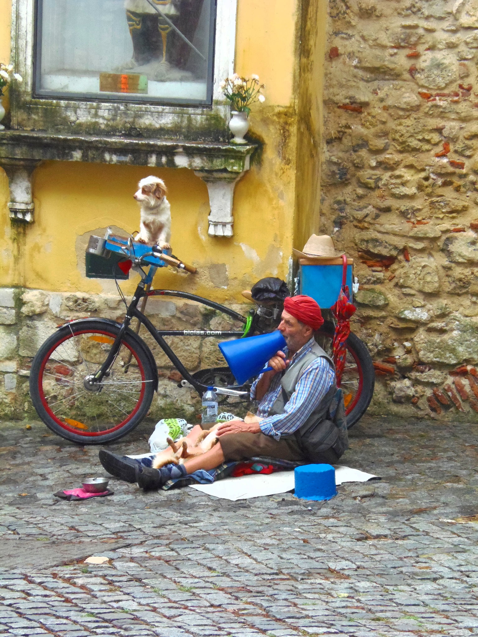 Le Castelo ou château Sao Jorge dont la silhouette se découpe sur les hauteurs de Lisbonne veille sur la ville. Lieu de grand passage, le pied du château attire mendiants en tous genres.