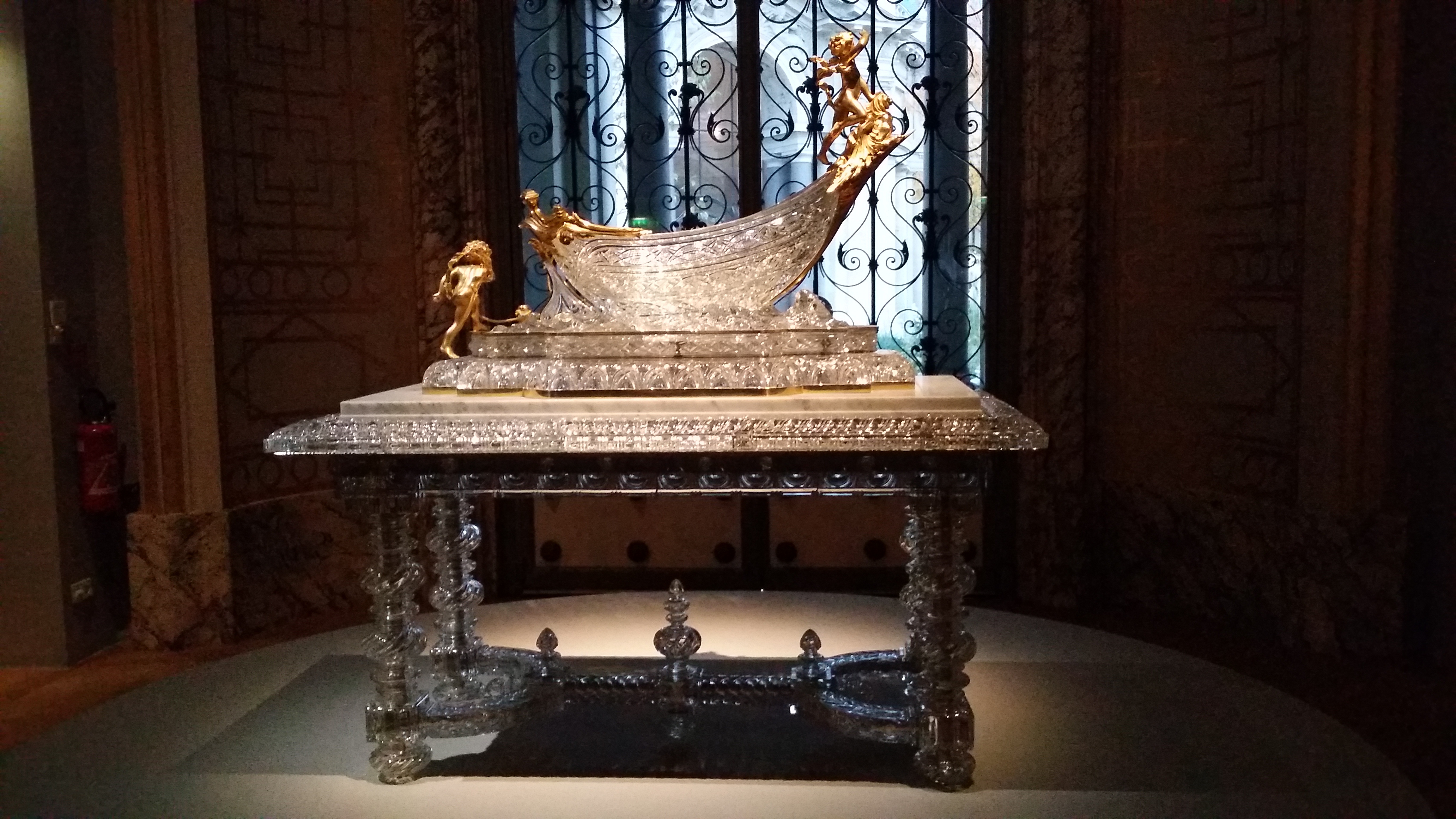 Table présentée à l’Exposition universelle de Paris de 1889 et nef montrée à l’Exposition universelle de 1900 en cristal de Baccarat.