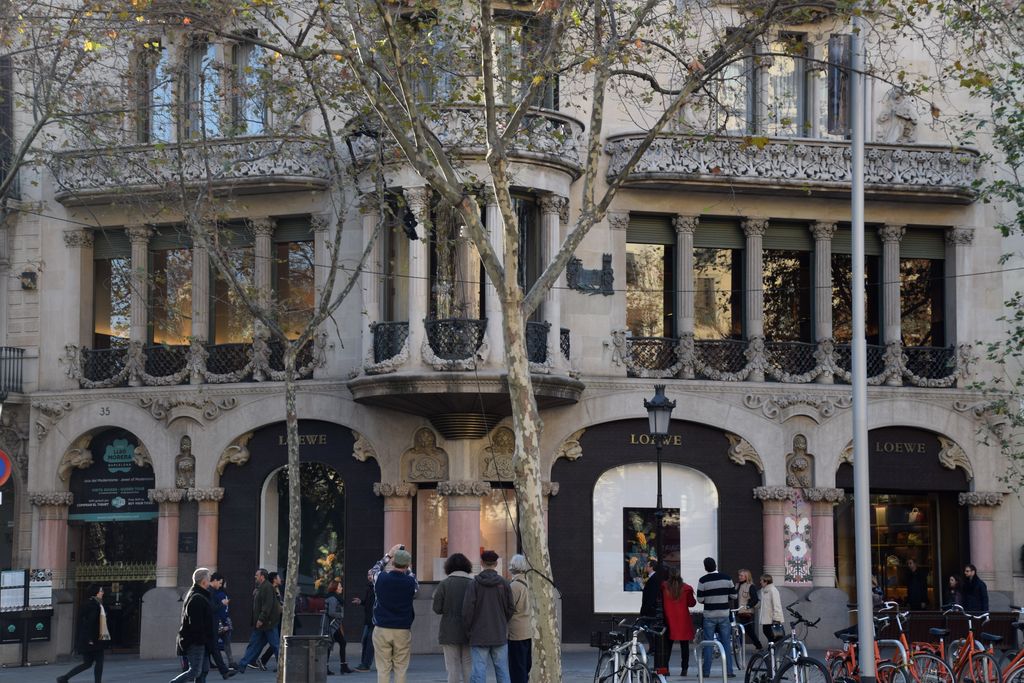 Du très haut de gamme espagnol. La marque existe depuis 1846. Je comparerais Loewe en Espagne à Hermès en France avec du prêt-à-porter et un travail du cuir très qualitatif pour de superbes sacs. Le magasin que j’indique bénéficie d’un cadre et d’une situation très privilégiés puisqu’il occupe une partie du rez-de-chaussée de la Casa Lleo i Morera.