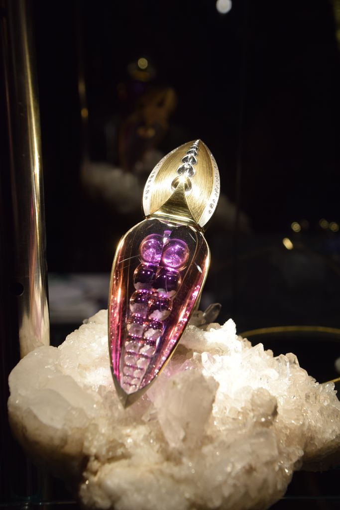 L’ambiance y est étonnante, on a l’impression de plonger quelques siècles en arrière. En plongeant le regard dans la cave qui est ouverte, on peut voir l’atelier de création. Dans les vitrines de la boutique, les pièces exposées sont empreintes de mystère. Elles sont imaginées comme de véritables sculptures baroques dans lesquelles les pierres serties jouent un rôle fort, notamment en raison de leur taille –souvent importante-, de leur structure et de leur couleur. Des créations qui ne peuvent pas laisser insensibles.