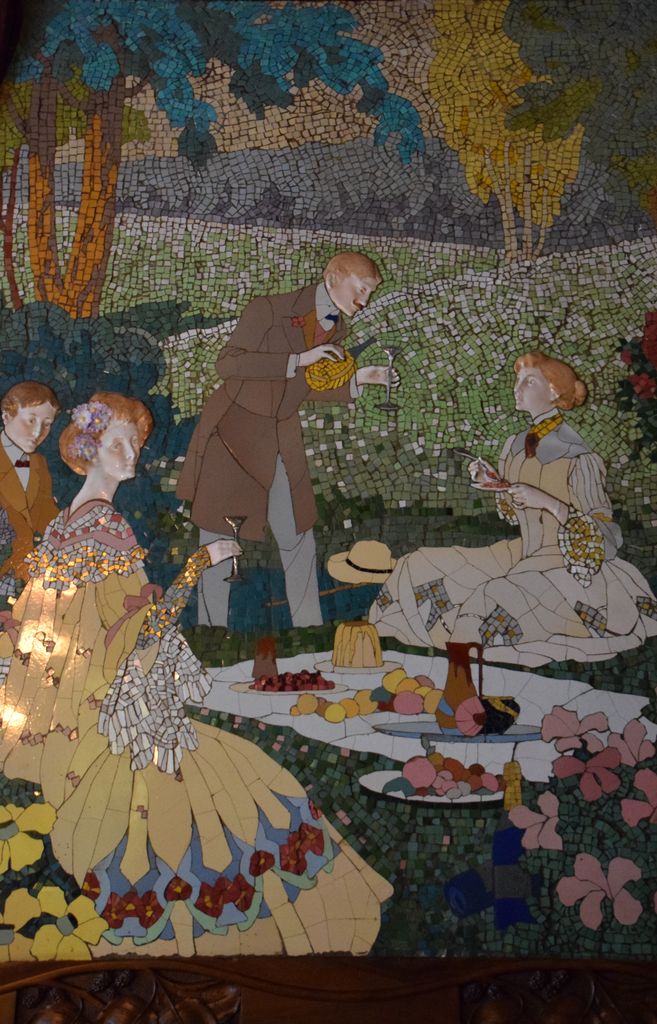 Pour rester dans l’ambiance, j’ai opté pour l’Hôtel España dont je parle plus longuement dans un article spécifique. Il est non seulement idéalement situé dans le Raval, à quelques mètres de la Rambla et de la station de métro Liceu, mais surtout il est l’œuvre de Lluis Domenech i Montaner. Un argument irrésistible à mes yeux. Si l’établissement d’origine a été inauguré en 1859, les travaux de restructuration ont été confiés à cet architecte en 1898. Les pièces maîtresses de l’hôtel sont la salle de petits déjeuners, ancienne salle à manger des hôtes, avec sa grande fresque aux sirènes et, en partie basse, ses lambris rehaussés de cabochons en céramique, la salle de restaurant qui est habillée à mi-hauteur de mosaïques polychromes surmontées de boiseries richement travaillées et le bar Arnau, ancien salon de lecture, doté d’une magnifique cheminée, œuvre d’Eusebio Arnau.