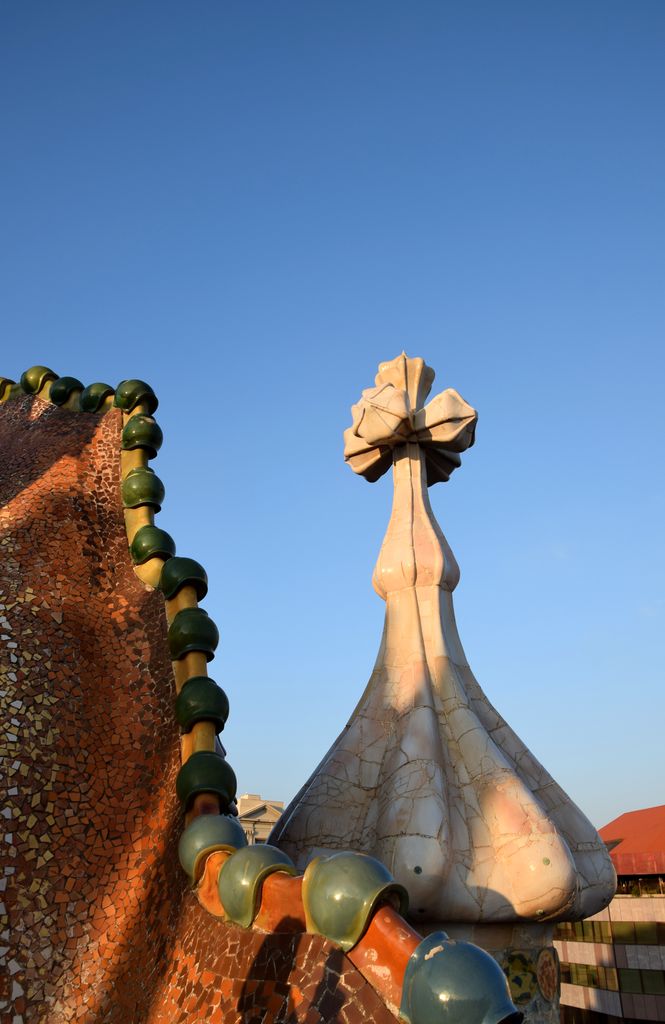 De là, on passe sur le toit aux terrasses en dénivelé peuplé de nombreuses cheminées recouvertes des fameux « trencadis », ces tessons de céramique et de verre chers à Gaudi. Cet ensemble est un spectacle en soi.