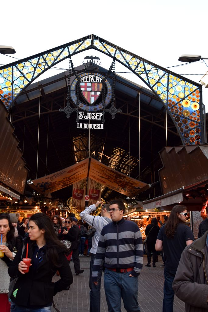 Ce marché dont la structure métallique a été posée en 1914 existe depuis beaucoup plus longtemps et continue à évoluer. Très animé, il est particulièrement bien achalandé. Les produits présentés sont magnifiques et sont agencés en natures mortes très suggestives. Rien qu’à les regarder l’eau vient à la bouche. Les étals des poissonniers sont remarquables de variété et de fraîcheur. Au passage, vous pourrez acheter une salade de fruits dans un grand verre en plastique à consommer sur place ou quelques mètres plus loin en continuant votre promenade. La Boqueria a mis en place une école de cuisine la « Aula gastronomica » où officient grands chefs pour éduquer petits et grands.