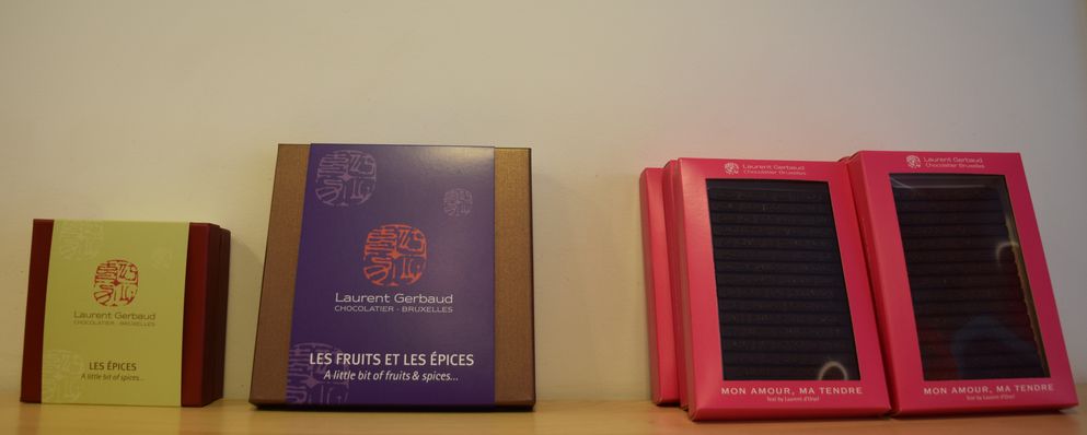 Avec Laurent Gerbaud, ce n’est pas une énième affaire de chocolat belge qui a vu le jour. Il propose sa version de virtuose du chocolat et laisse vagabonder son imagination pour créer des associations surprenantes a priori mais évidentes une fois qu’on les a goûtées. Principe de base, les ingrédients sont toujours sélectionnés avec rigueur. Laurent Gerbaud travaille avec des chocolats de trois origines : Madagascar, Equateur, Pérou. « Le goût maison n’est pas amer mais fruité, gourmand, long en bouche et il n’y a que du beurre de cacao », commente-t-il. Le sucre et le gras ajoutés, ce n’est pas pour lui. Il le marie avec des fruits secs, des fruits confits ou séchés, des épices –cumin vert, noix de muscade ou cardamome, par exemple-, sel, ou de la crème fraîche de noix de coco. J’avoue avoir succombé à des genres d’orangettes au gingembre, un mariage subtil et plein de force. Et ce grand voyageur dans l’âme est toujours à recherche des meilleurs ingrédients.