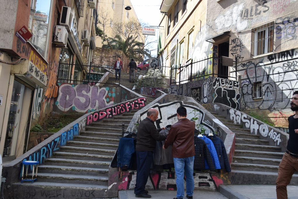 Une boutique de prêt-à-porte inattendue à Istambul, la rampe de l’escalier sert de vitrine.