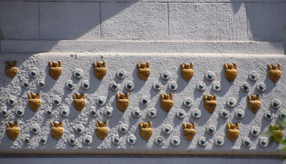 Balcons aux motifs à base de carrés viennent structurer cette façade sur laquelle s’amusent une ribambelle d’angelots.