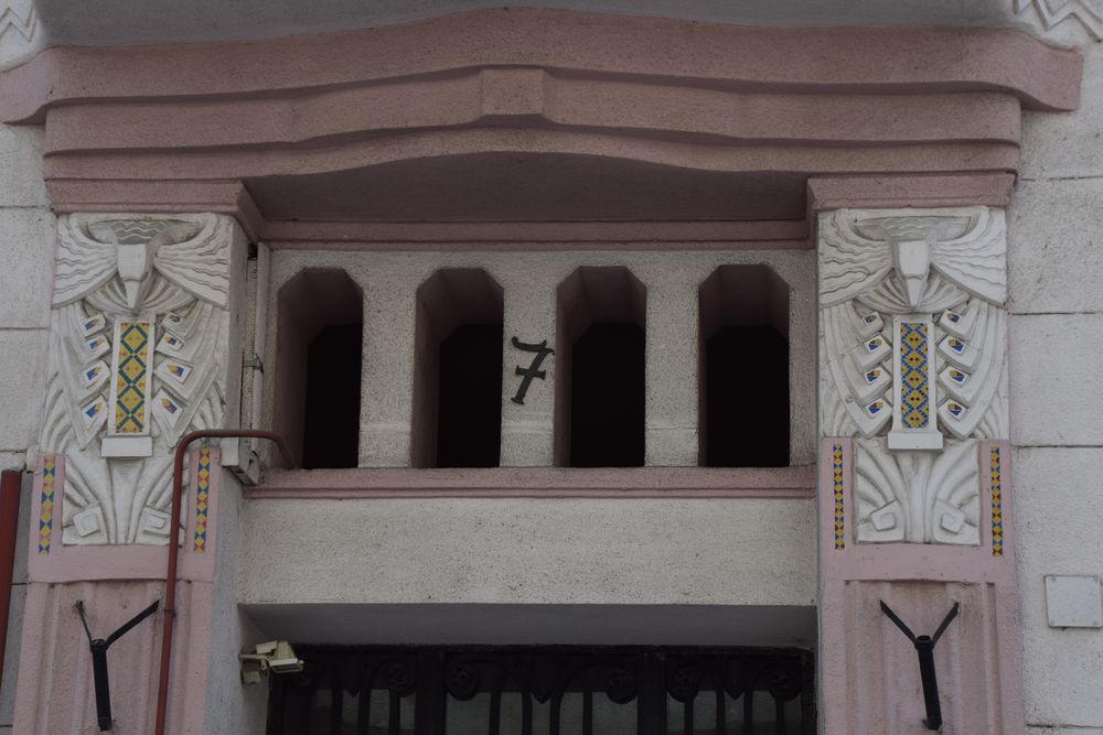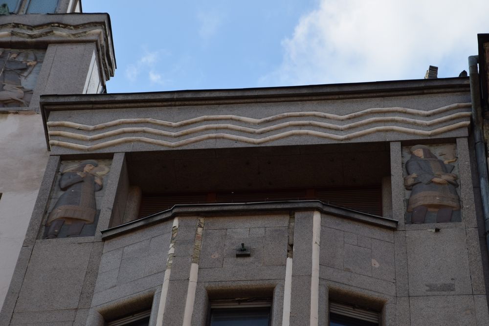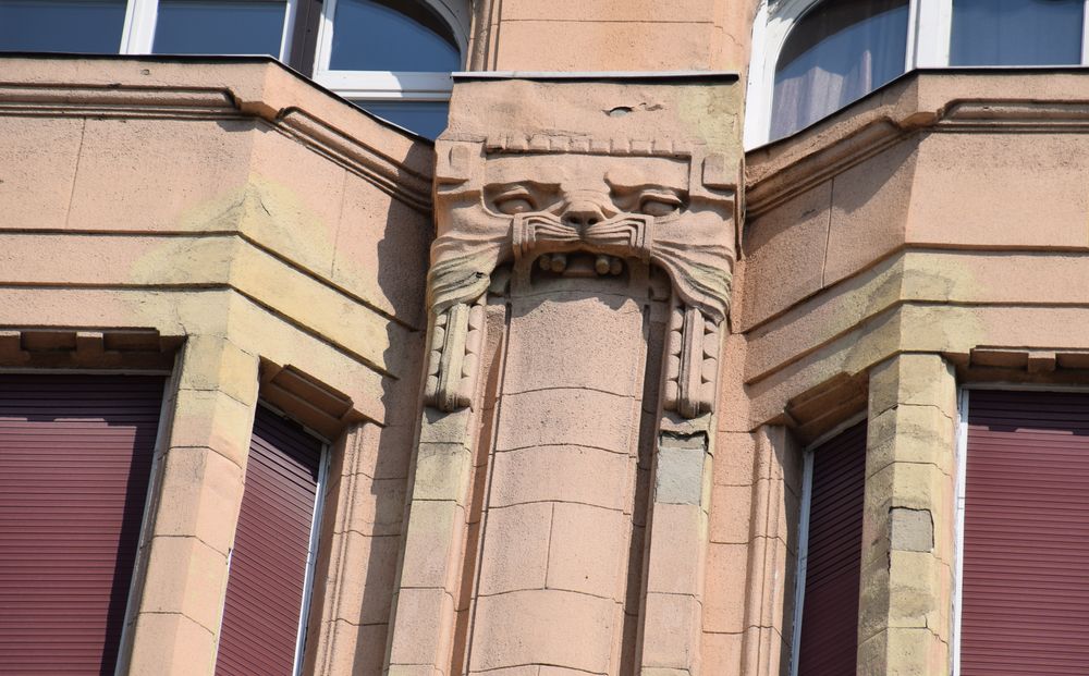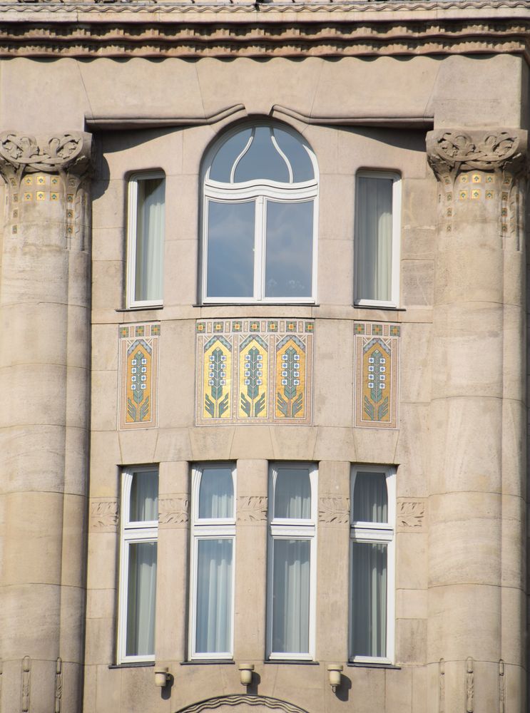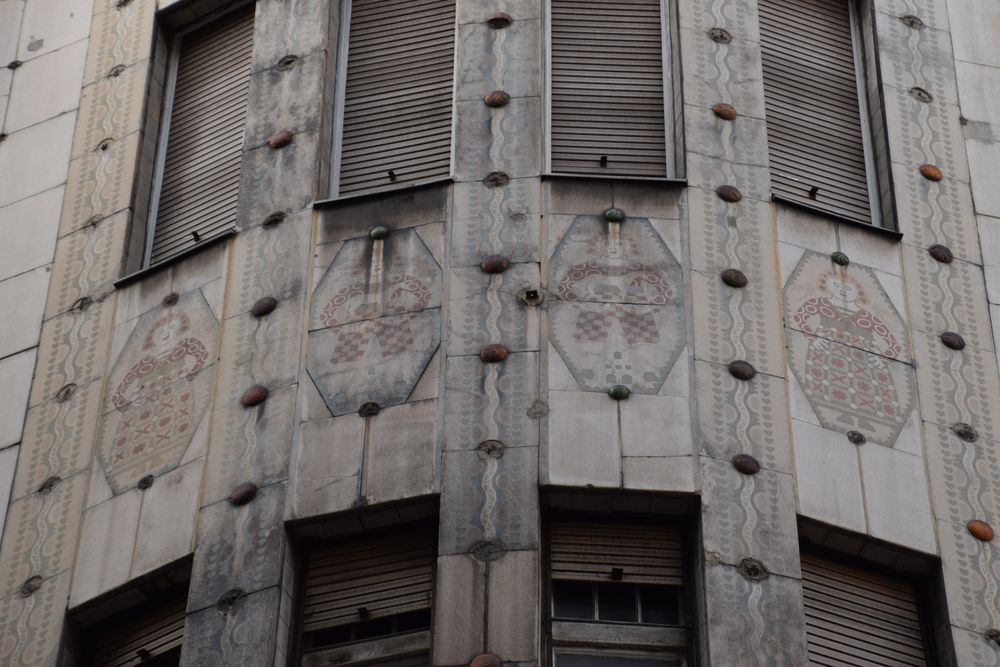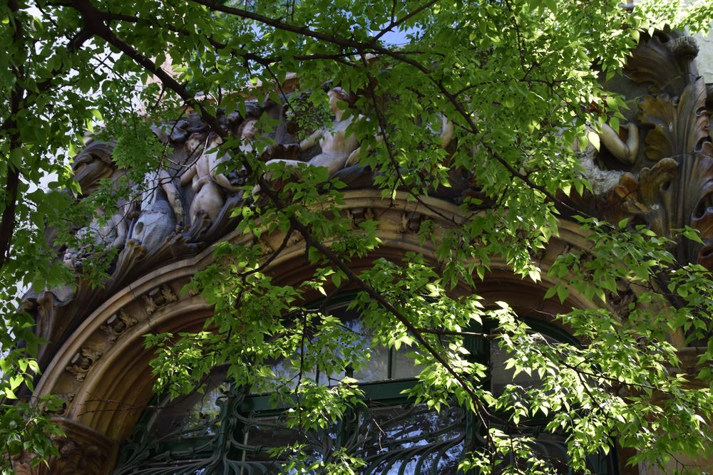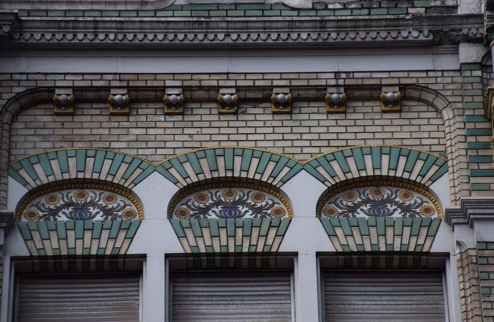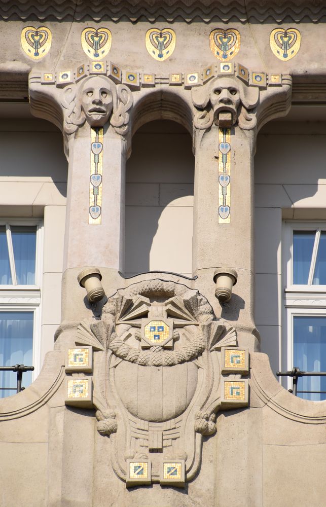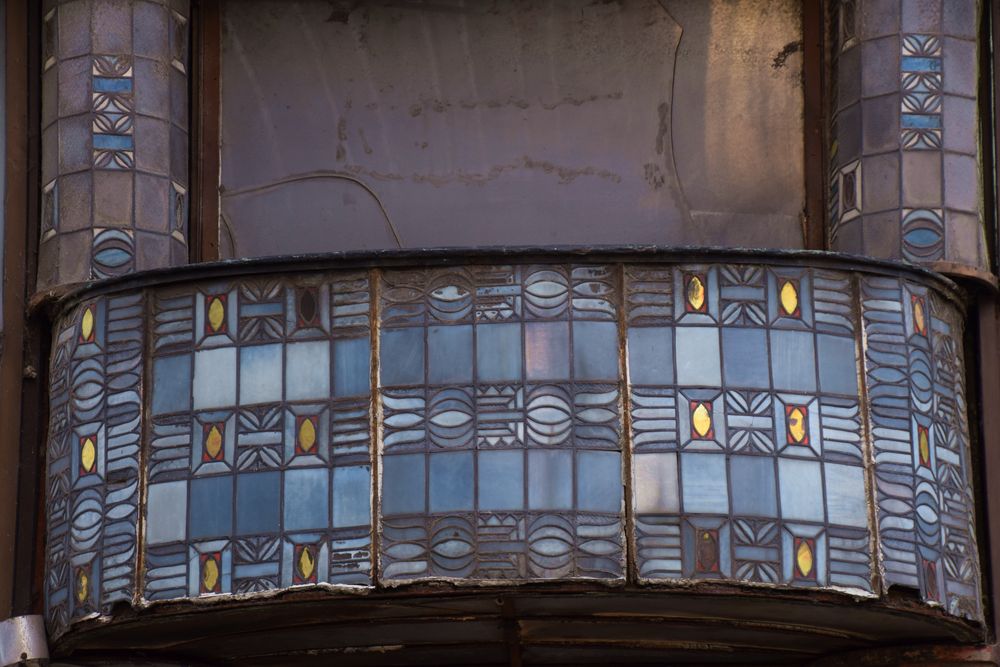 Détail de l’immeuble d’angle traité dans le style Art nouveau.