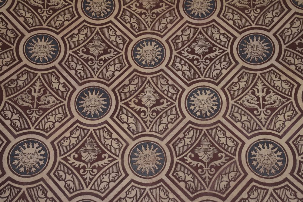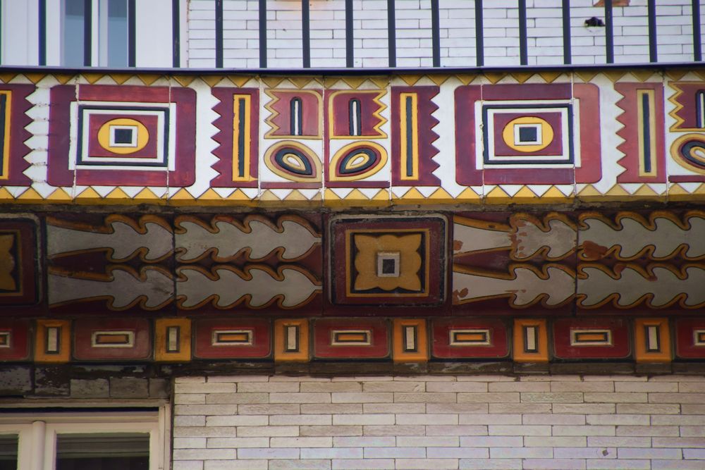 Sgraffites à l’intérieur d’une des constructions du Pavillon du Jardin Royal à Budapest.