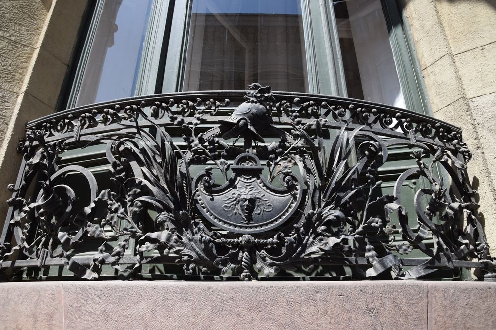 Inspiration belliqueuse pour le garde-corps de ce balcon à Budapest.