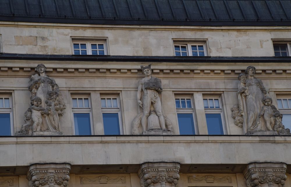 Même en hauteur, à des endroits peu visibles, les architectes n’ont pas oublié d’installer des statues sur cet immeuble de Budapest.