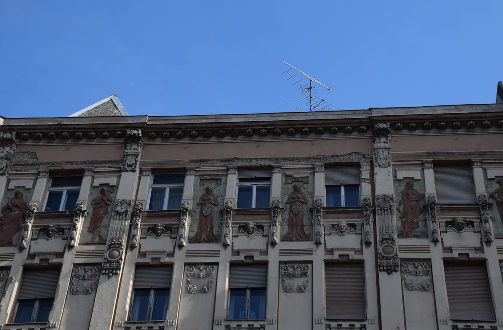 Alcôves, découpes et belles aux vêtements souples pour cet immeuble Art nouveau à Budapest.