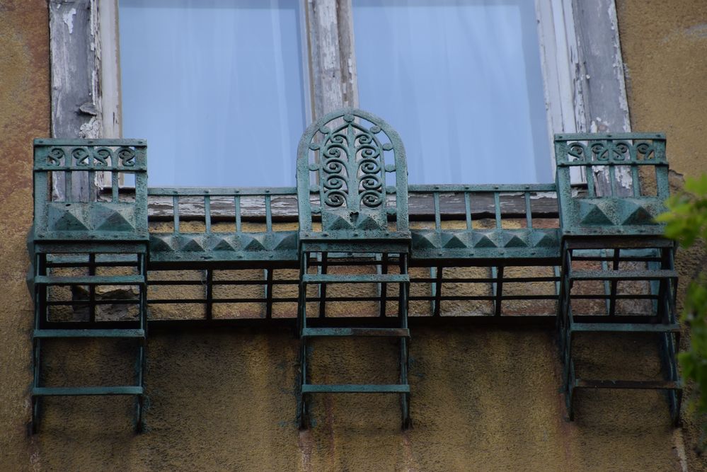 Bord de fenêtre souligné par une finition en ferronnerie à Budapest.