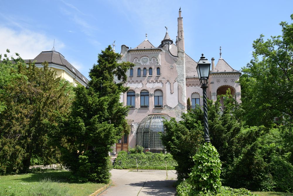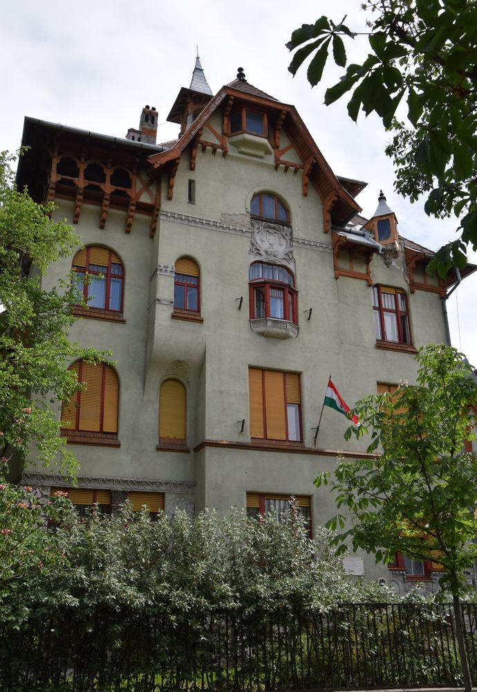 Toits, avant-toits, petites tourelles allègent la silhouette de cette villa de Budapest.
