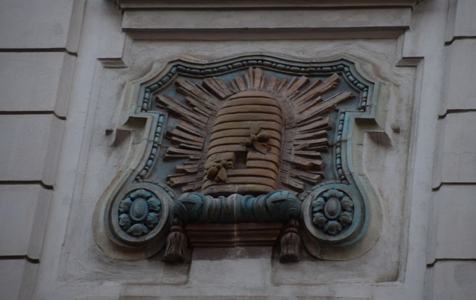 Deux hiboux veillent sur cet immeuble de la rue Vaci à Budapest.