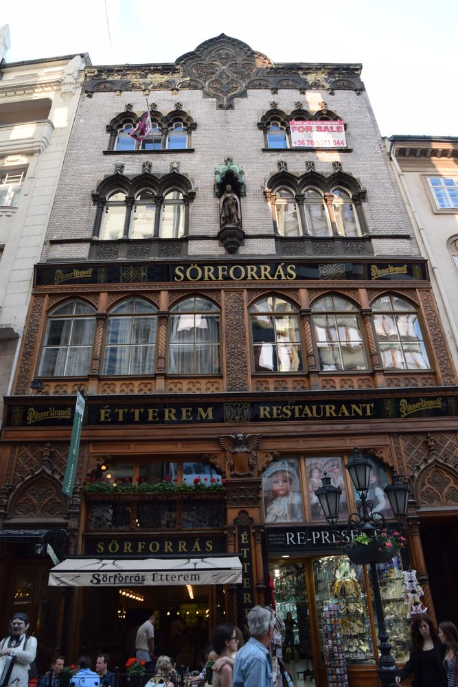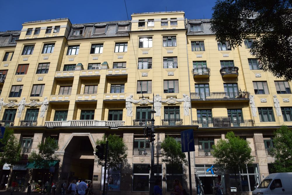 Cet immeuble de la rue Vaci à Budapest possède une façade très travaillée qui ne passe pas inaperçue.