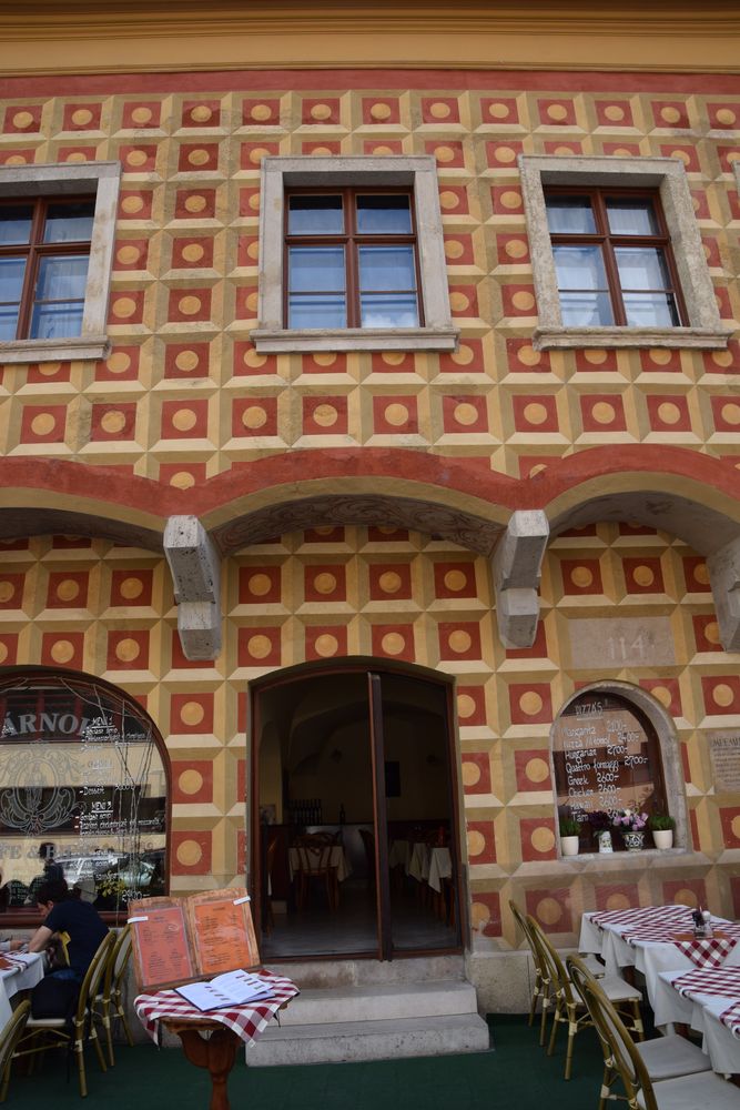Damier contrasté pour cette maison ancienne de Budapest, près du Château.