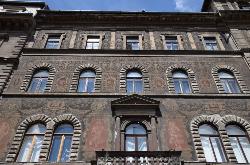 Ensemble d’immeubles entièrement habillés de sgraffites sur l’avenue Andrassy à Budapest.