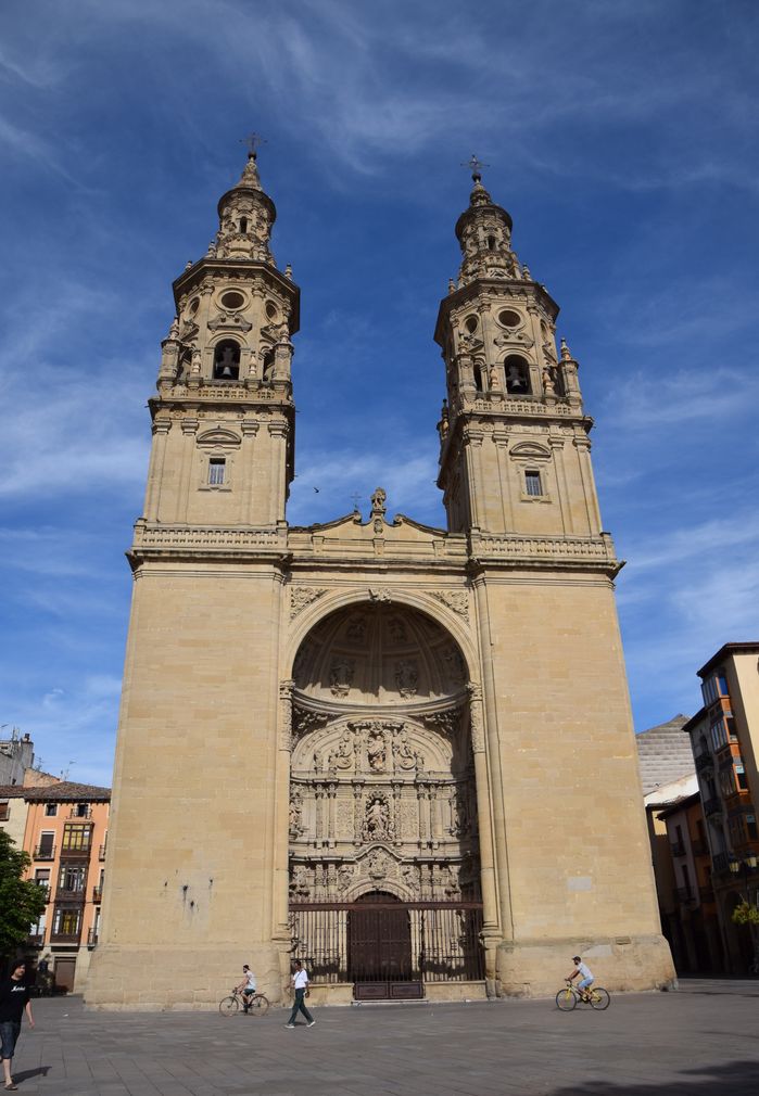 Revenons aux églises dont les flèches rapprochées pointent vers le ciel. La co-cathédrale de la redonda avec ses « deux tours jumelles » et son portail baroque en quart de cercle, en retrait est le point de repère par excellence du vieux Logroño. Longée par la calle portales, elle donne sur la plaza del Mercado d’où on peut la contempler depuis la terrasse d’un café.
