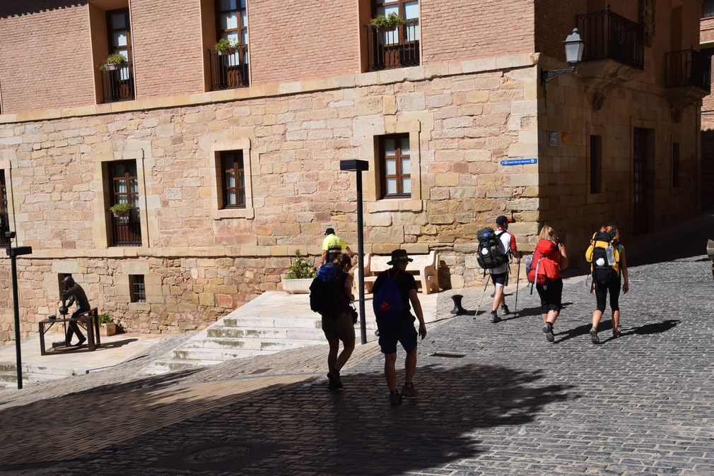 Pèlerins sur le chemin de Saint-Jacques-de-Compostelle, de passage à Navarrete (Rioja).