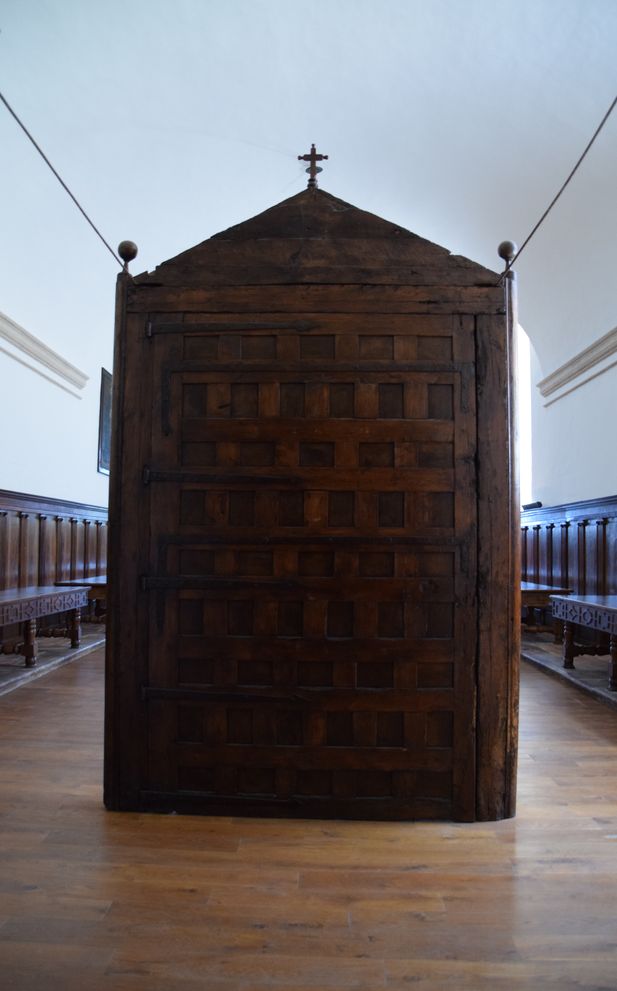 Ecran devant la porte du réfectoire de Yuso à San Millan de Cogolla (Rioja) pour protéger l’intimité des moines pendant leur repas.