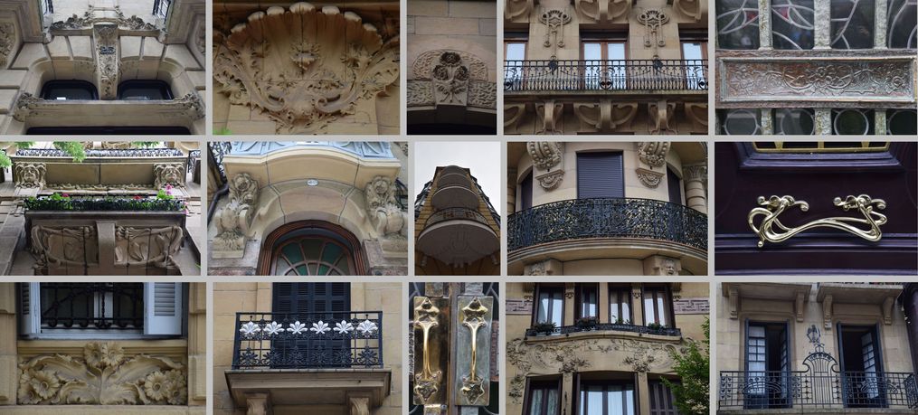 Détails typiquement Art nouveau ou modernistes d’immeubles de Saint-Sébastien, Donostia.
