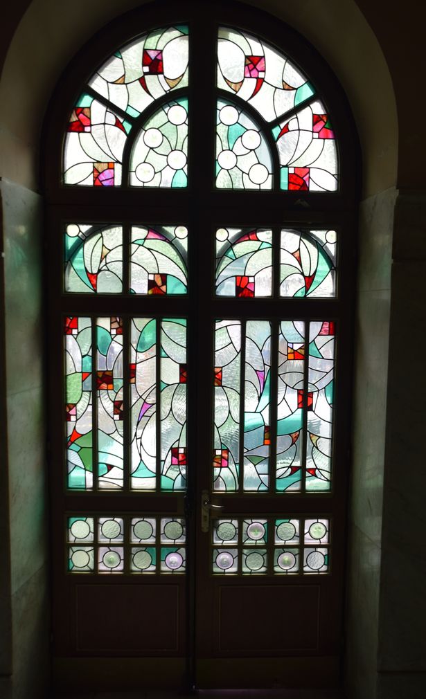 Vitraux de la porte du 1 E, calle Zubieta à Saint-Sébastien, Donostia.