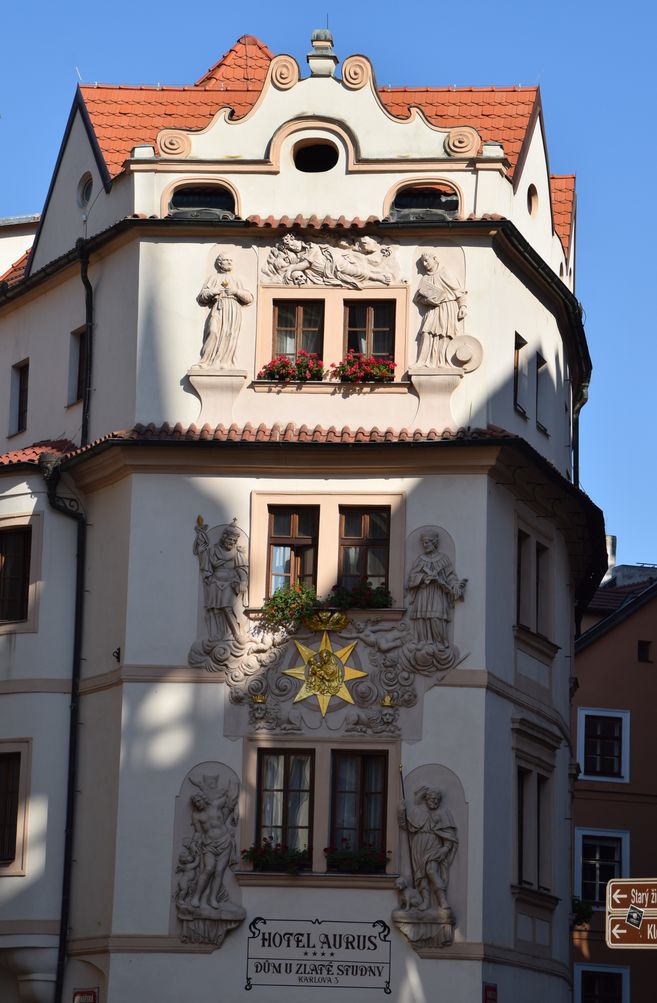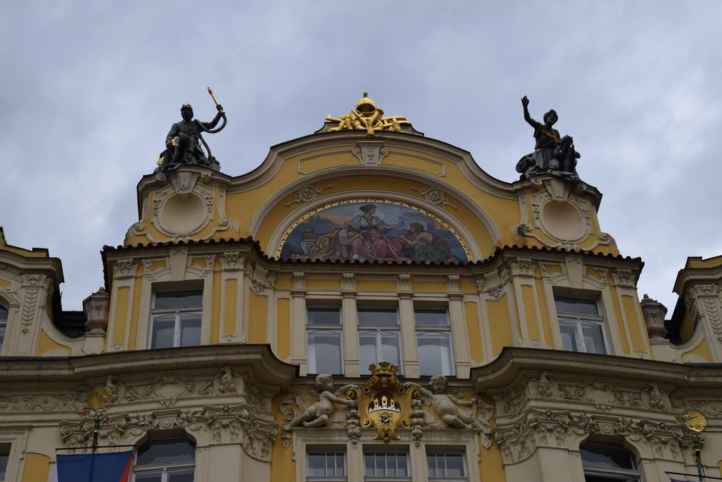 Façade richement décorée entre le Pont Charles et la place de la Vieille Ville à Prague.