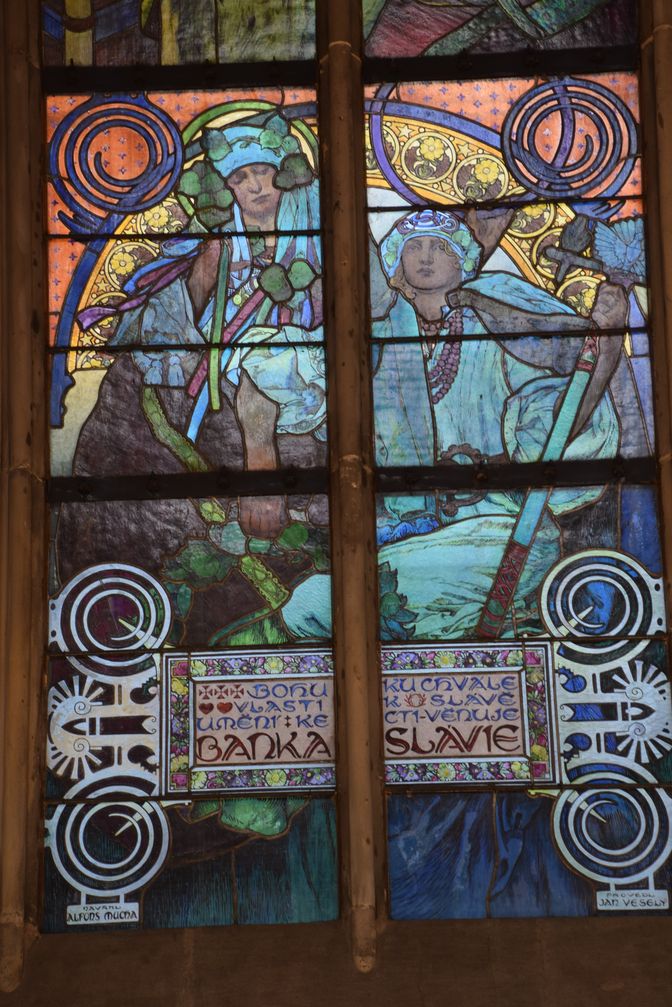 Vitraux réalisés par Mucha à la Cathédrale Saint-Guy à Prague.