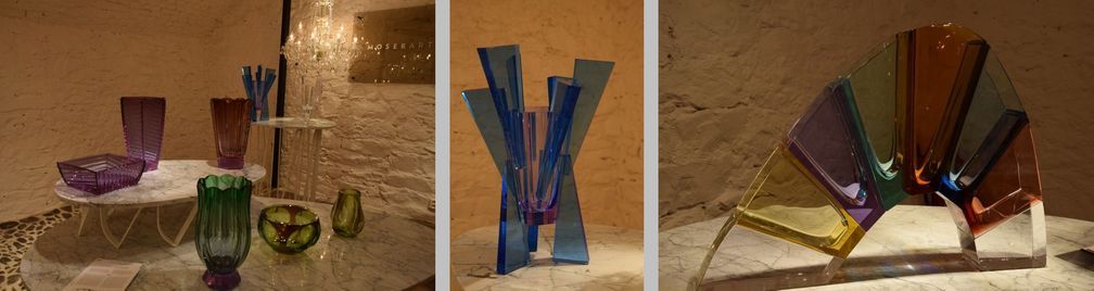 Moser, vénérable maison créée en 1857 et bardée de récompenses, a plusieurs boutiques à Prague dont une sur la place de la Vieille Ville. Le cristal y est traité avec une maîtrise de longue date mise au service de talents qui savent le magnifier. Modèles de belle facture classique mais aussi créations contemporaines éblouissantes. Une exposition de pièces de designers était organisée au sous-sol lors de mon passage. La sélection très pointue mettait l’accent sur des formes originales et sur le travail des couleurs. Du grand art.