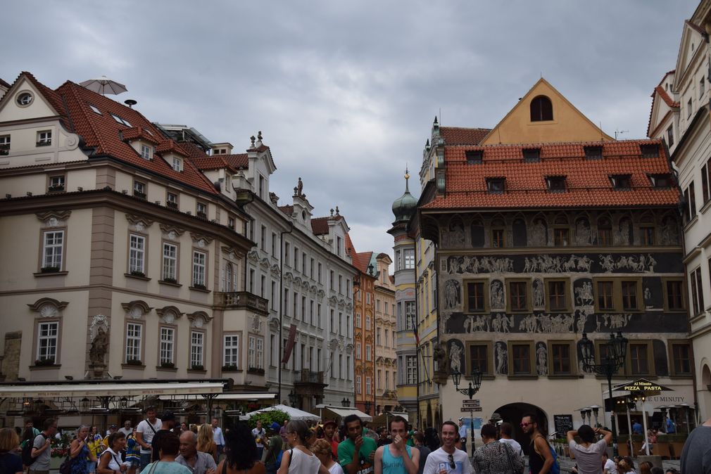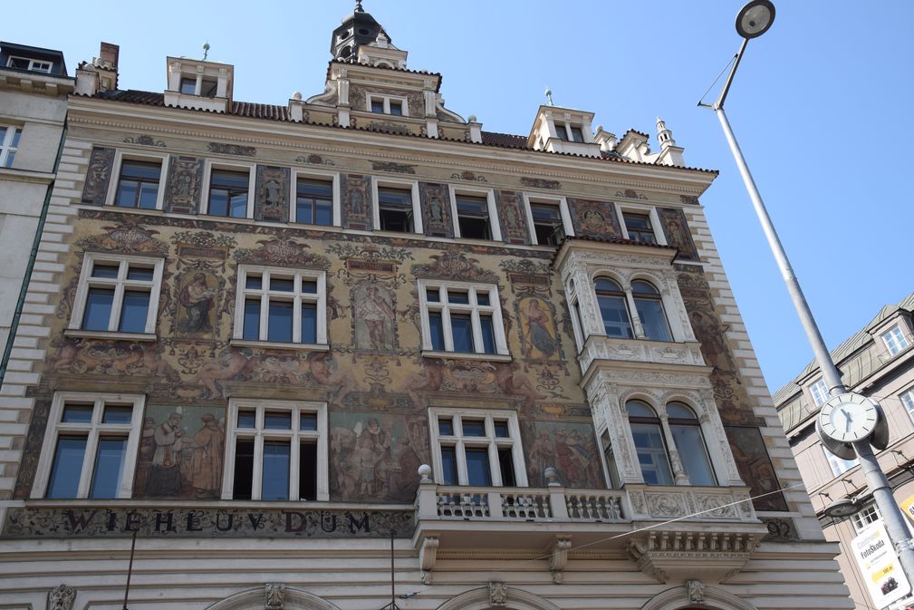 bâtiment décoré entre pont charles et place vieille ville Prague