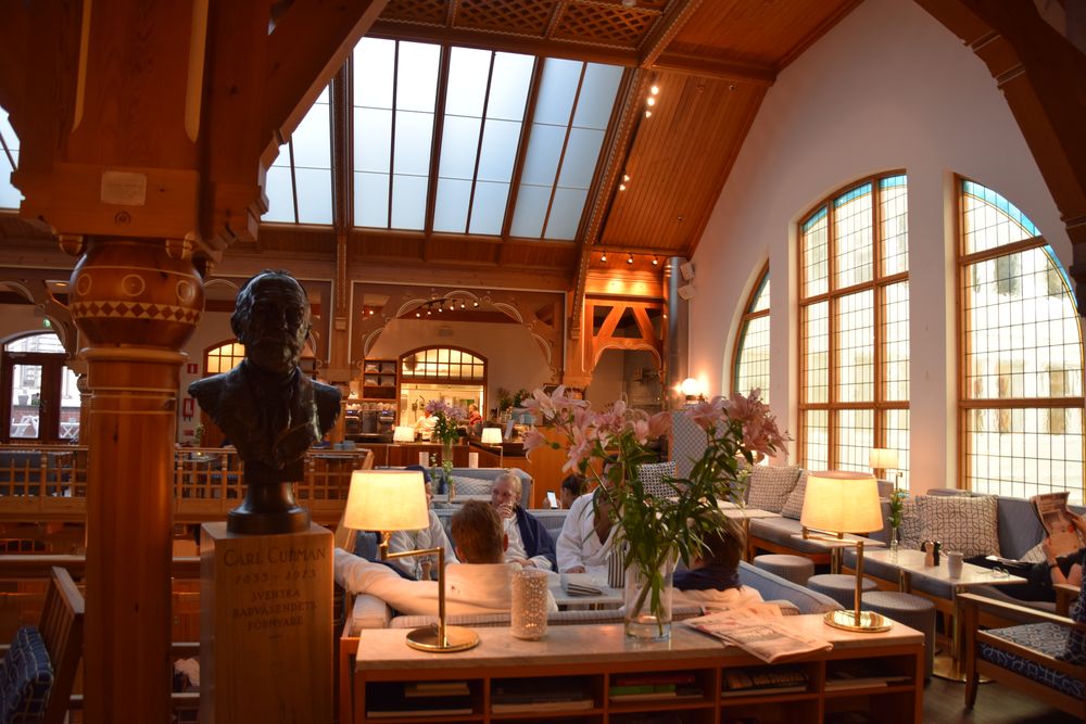 Pas facile de trouver son entrée même quand on sait qu’elle se trouve au n°36 de Sturegallerian. En fait, cet établissement typiquement Art nouveau terminé en 1903 a été détruit par le feu en 1985. C’est à l’occasion de sa reconstruction à l’identique que son atrium a été transformé en centre commercial.