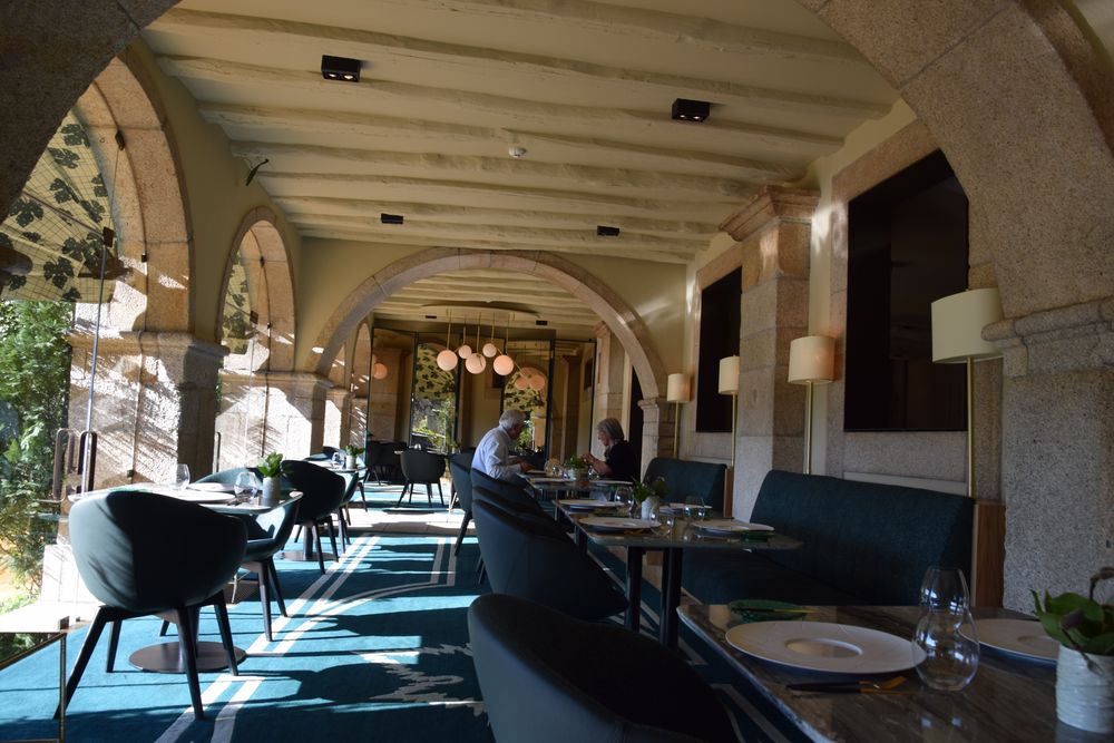 A l’intérieur, la salle de restaurant dans de tons de vert apaisant est baignée de soleil. Le service très attentif est irréprochable. Le plateau de pains est incroyablement riche. Nous avons seulement pris une soupe à la crème de truffe, une merveille ! Je recommande vivement. Prix très corrects et parfaitement justifiés pour du haut de gamme.