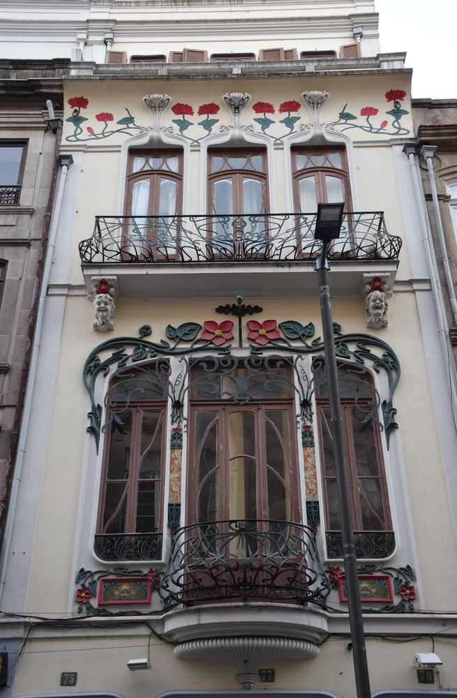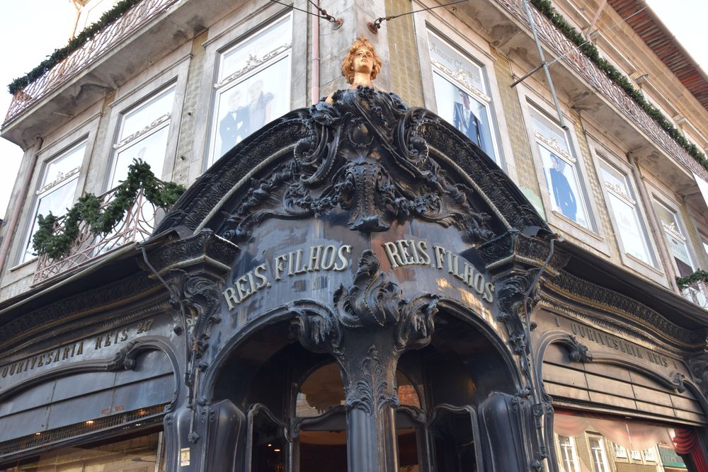 Fronton Art nouveau d’une boutique d’angle de la rue Santa Catarina à Porto.