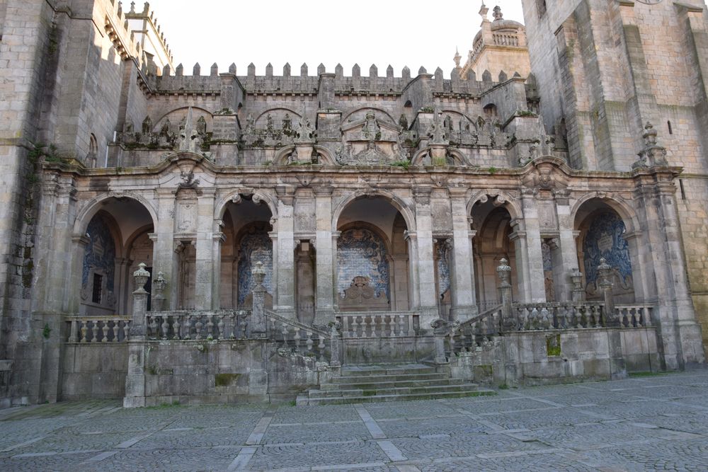 Nombreuses églises à Porto, mais je retiendrai la cathédrale  engoncée dans d’autres bâtiments à l’arrière.