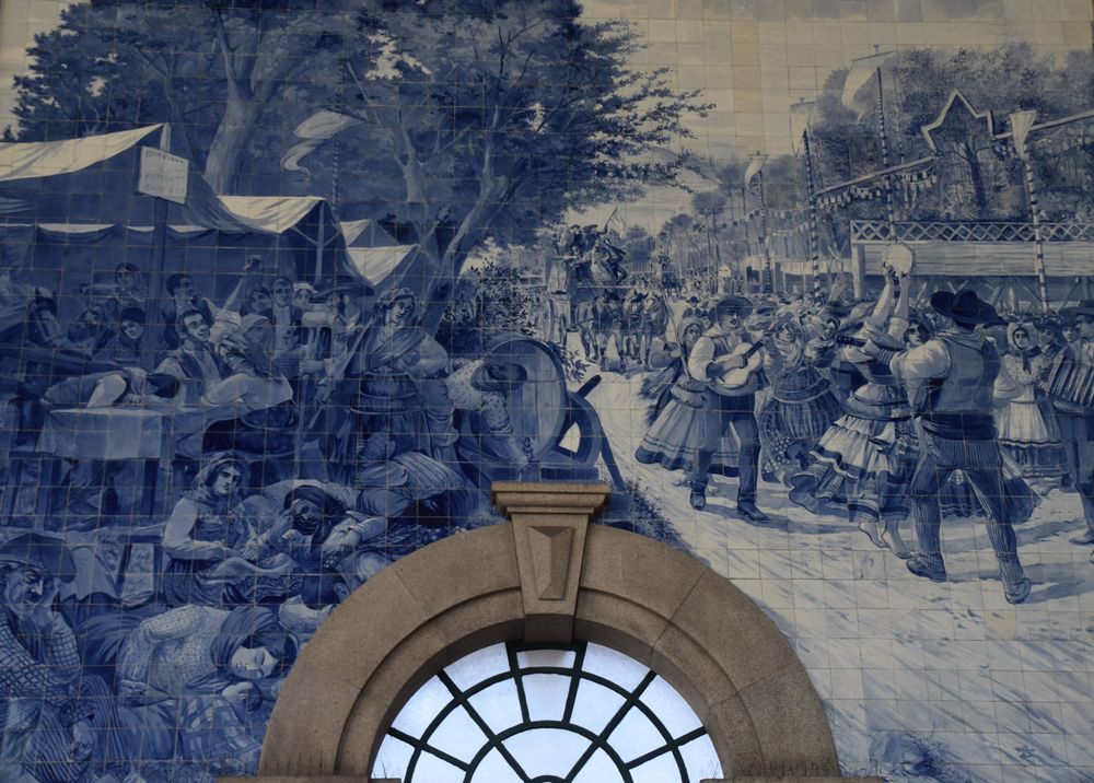 Tableaux colorés en partie haute de la gare de Sao Bento à Porto.