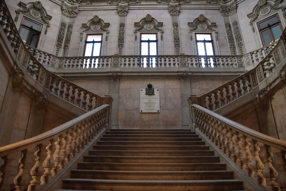 Le Palacio da Bolsa, à côté duquel est installé l’ancien marché Ferreira Borges avec ses structures métalliques peintes en rouge, a été achevé en 1910 à l’emplacement de l’ancien couvent Saint-François.