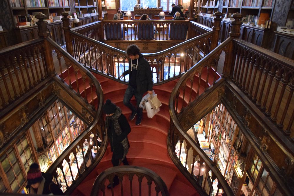 Les étonnantes circonvolutions de l’escalier de la librairie Lello à Porto.