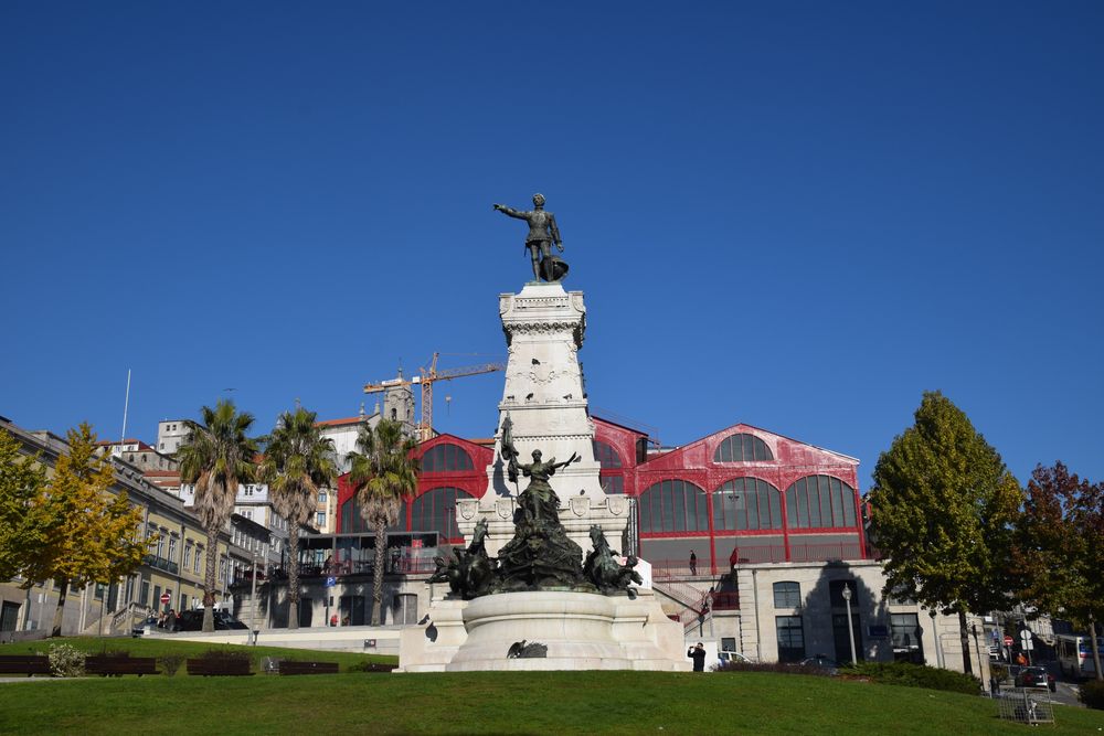 Monument à la gloire du prince Henri le Navigateur devant le marché Ferreira Borges à Porto.