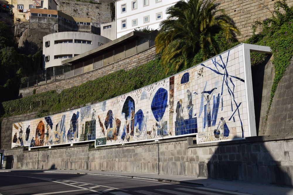 Les quais de la Ribeira bien évidemment sont un des principaux lieux d’attraction de Porto. A l’arrière, juste avant l’entrée du tunnel qui ramène vers la ville haute la fresque contemporaine d’azulejos, Ribeira Negra, créée en 1984 par Julio Resende.