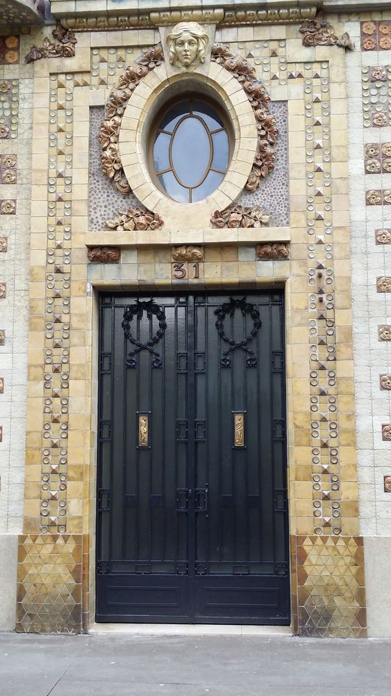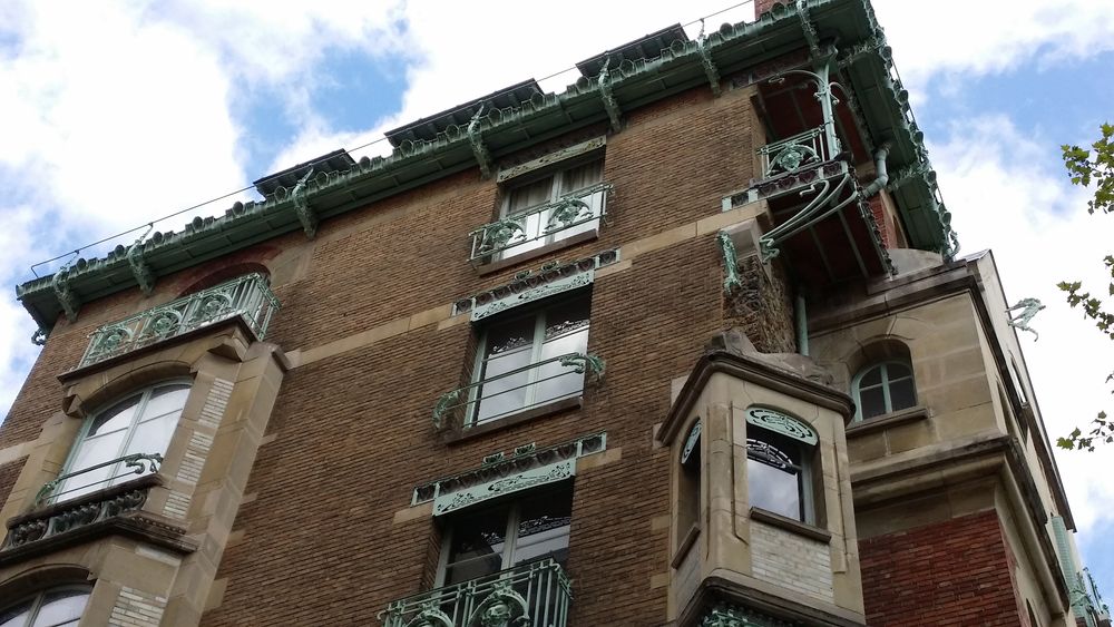 Je n’avais pas pris mon appareil photo mais je n’ai pas résisté à la tentation de faire des photos d’immeubles Art nouveau. Prises avec mon téléphone alors que le temps n’était pas toujours au beau fixe, ces photos ne rendent pas toute la richesse des couleurs et des détails des façades mais elles pourront donner une idée de l’inventivité des architectes.