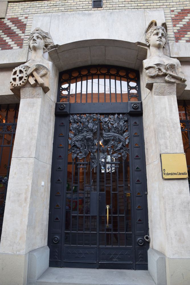 Le Palais des arts, 4 place Szczepanski, de Franciszek Maczynski, Art nouveau lui aussi est moins typique du style Jeune Pologne se situe dans un registre évoquant plutôt la Sécession viennoise.