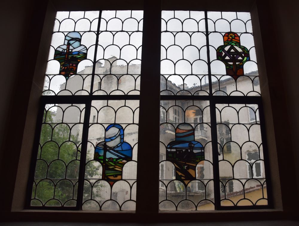 Bien que le bâtiment soit fermé, le concierge a eu l’amabilité de m’ouvrir. Les vitraux de la cage d’escalier toujours dessinés par Maczynski et réalisés par l’atelier Zelinski évoquent la modernité et représentent le travail en usine, les chemins de fer ou la navigation maritime.