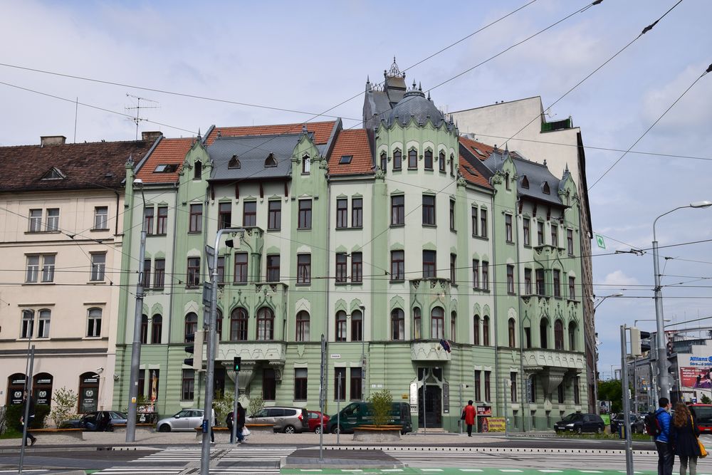 Place Safarikovo, deux constructions sont font remarquer au n°2 et au n°12 : une maison verte (1902-1904) et une autre d’un beau rose orangé soutenu (1904). Il reste des doutes sur les architectes qui y ont travaillé.