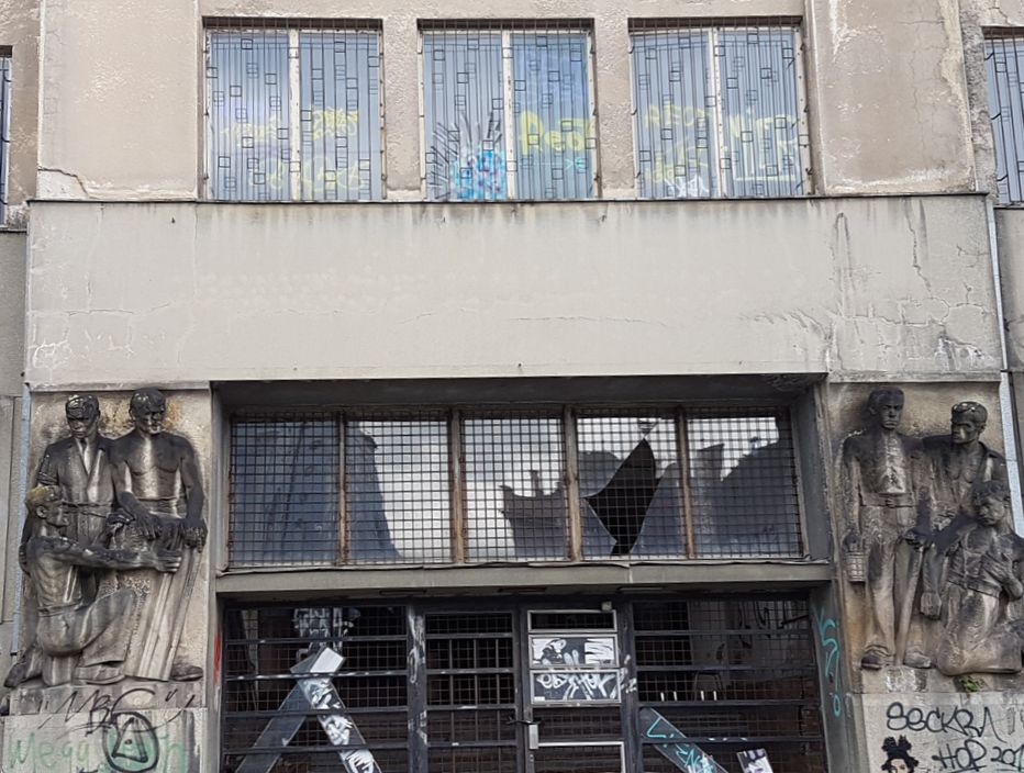 Face à l’Eglise bleue, un bâtiment abandonné, dans l’esprit des constructions communistes.